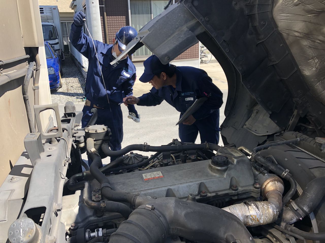 配送中の車両故障を未然に防ぐために日々点検を行い